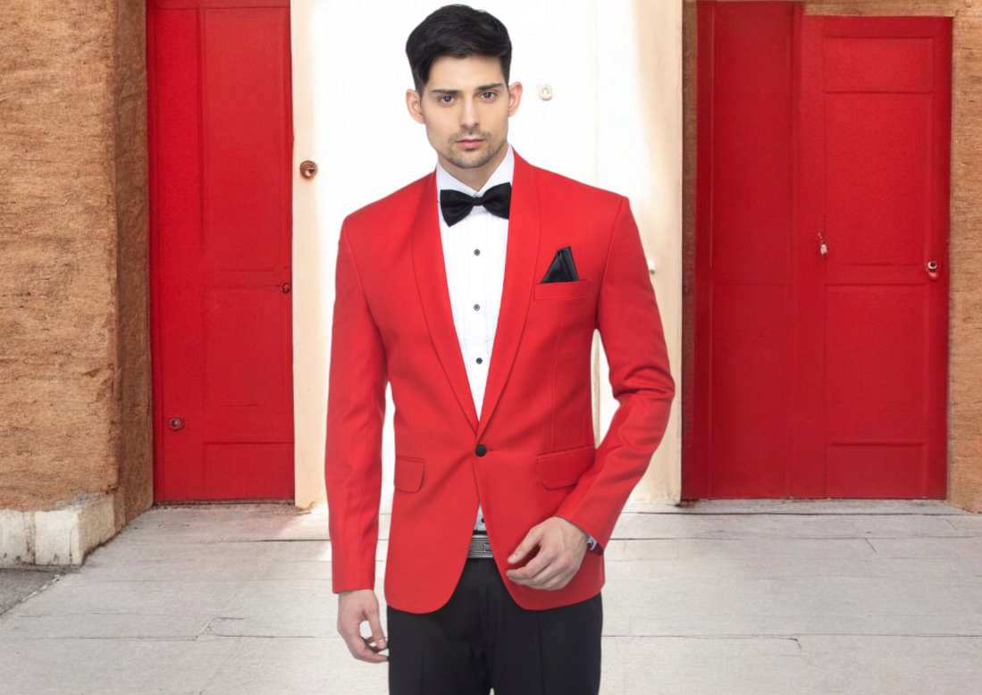 FAVOROSKI Red Fit Party wear Single-Breasted Tuxedo Blazer