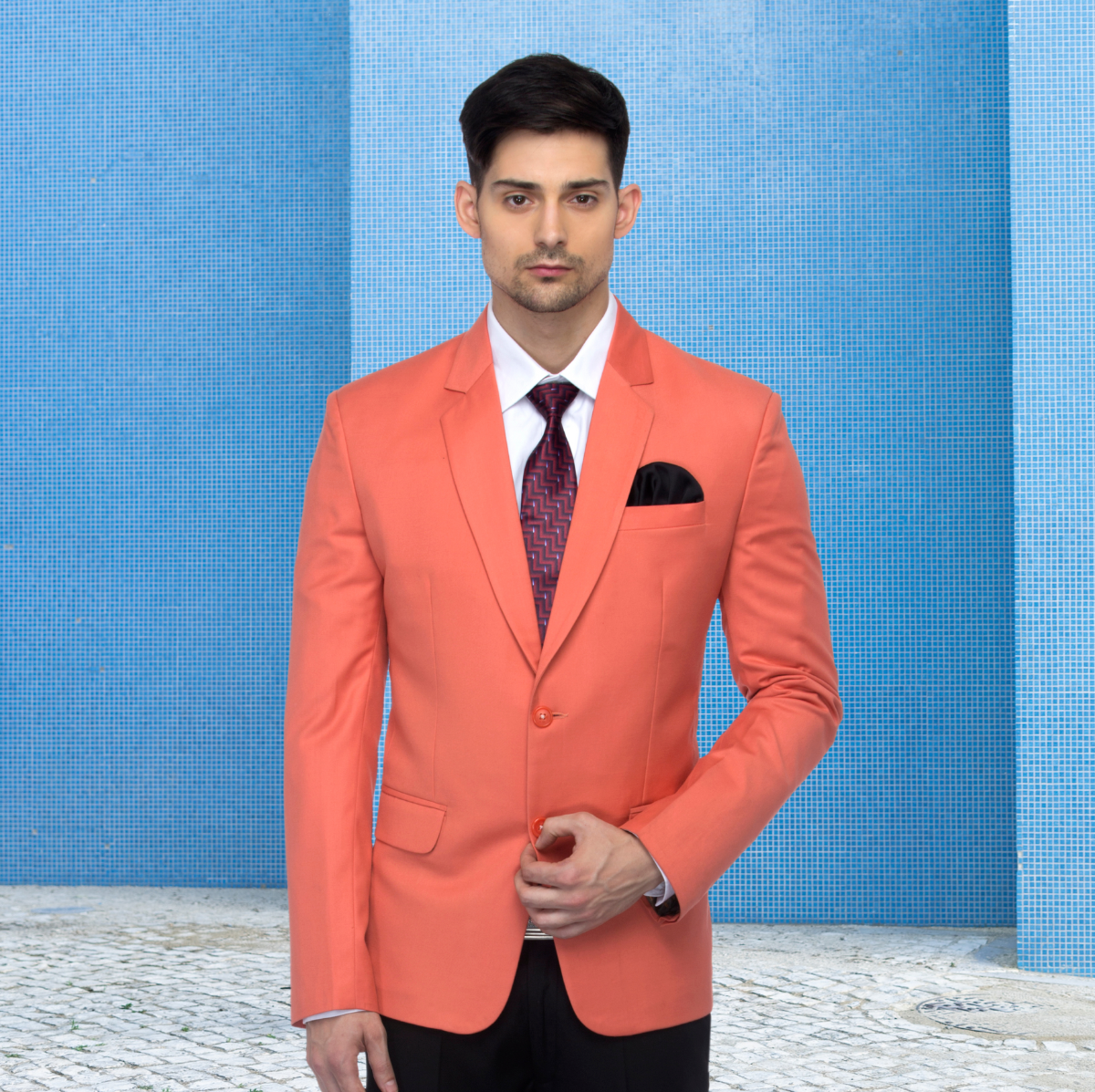 Rs. 2,499.00Rs. 5,999.00Light Orange single-breasted blazer, has a notched lapel collar, two button closure, long sleeves, a welt pocket, two flap pockets, slit on the back, an attached lining Comes with a pocket square. -