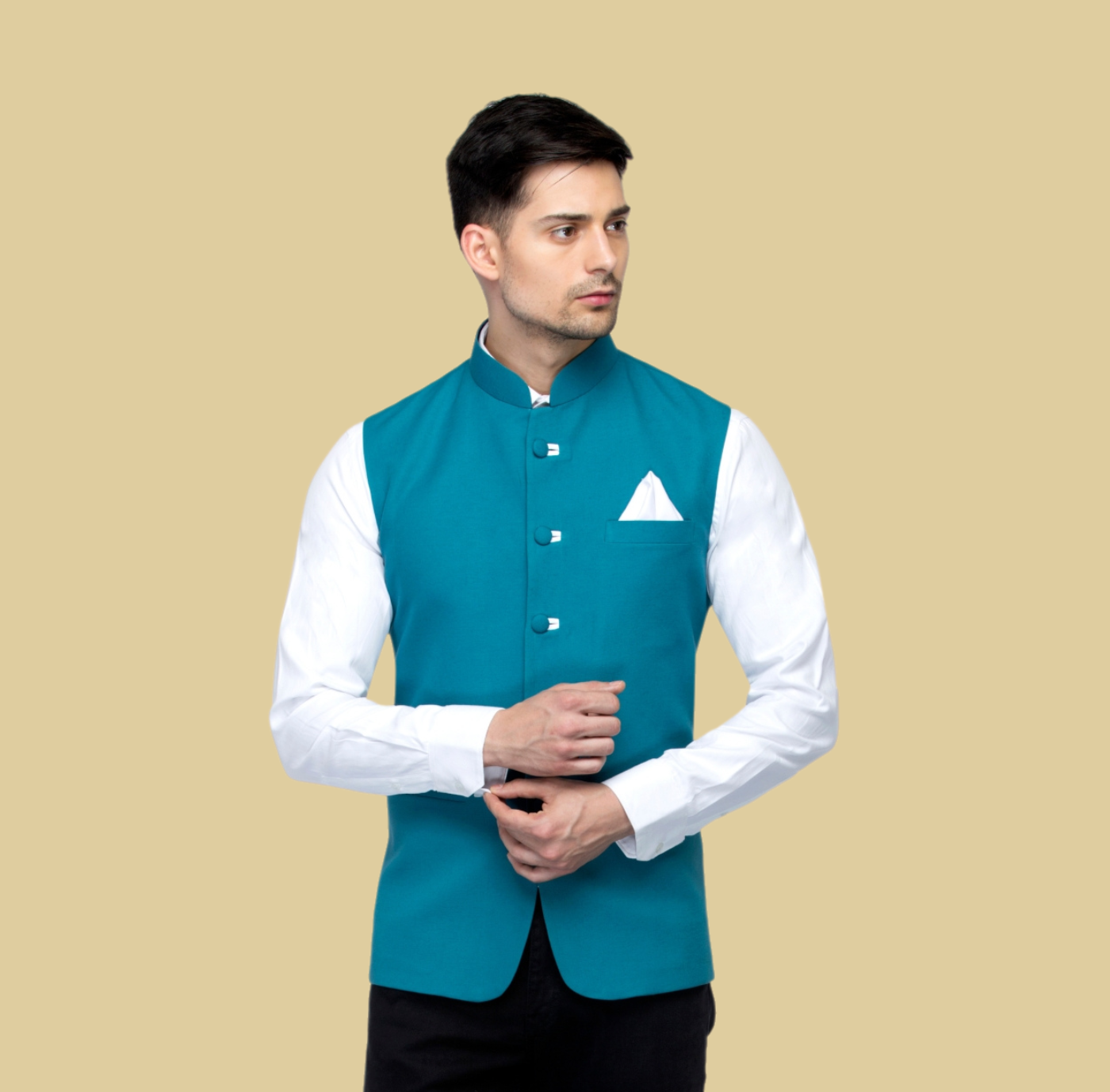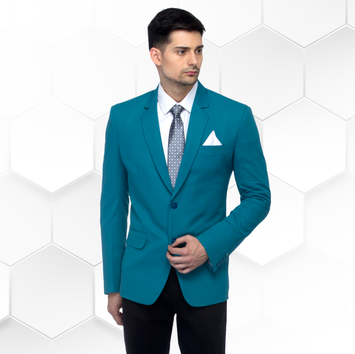 Rs. 2,499.00Rs. 5,999.00Turkish Green single-breasted blazer, has a notched lapel collar, two button closure, long sleeves, a welt pocket, two flap pockets, slit on the back, an attached lining Comes with a pocket square -
