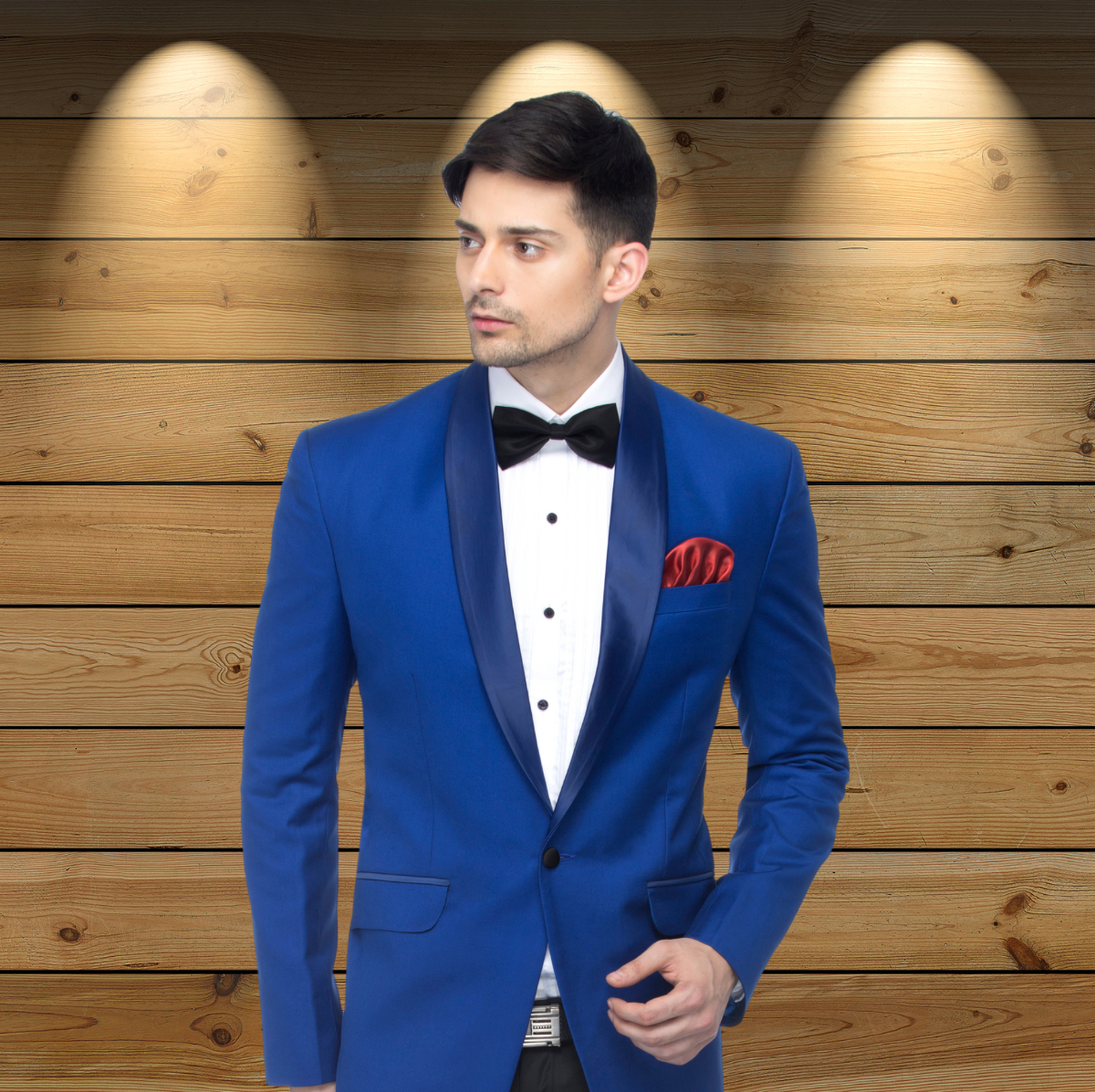 Rs. 2,499.00Rs. 5,999.00Royal Blue tuxedo blazer, has a shawl lapel, single-breasted with a button closure, long sleeves, a chest pocket, two welt pockets, vented back hem, an attached lining Comes with a pocket square. -