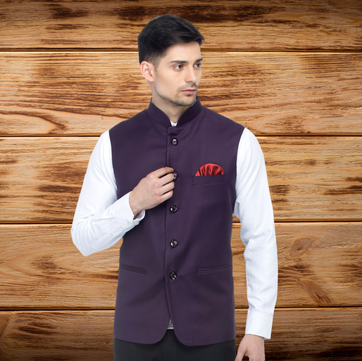 Rs. 2,499.00Rs. 5,999.00Dark Purple single-breasted blazer, has a notched lapel collar, two button closure, long sleeves, a welt pocket, two flap pockets, slit on the back, an attached lining Comes with a pocket square. -