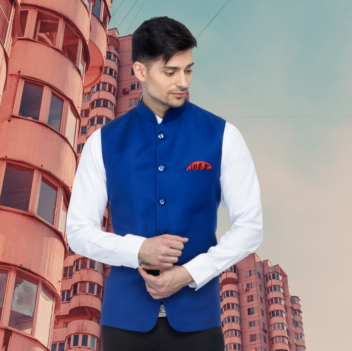 Rs. 2,499.00Rs. 5,999.00Red single-breasted blazer, has a notched lapel collar, two button closure, long sleeves, a welt pocket, two flap pockets, slit on the back, an attached lining Comes with a pocket square. -